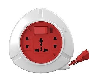 GM 3060 E-Book 4 + 1 Power Strip Red & White Color 250 Volts with Master Switch, Indicator, Safety Shutter & 4 International sockets, Extension Cord for Home Appliances