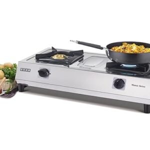The Usha Ebony Neo GS 2003 is a stylish 2-burner gas stove with a toughened glass top, offering durability and a sleek look. It features manual ignition, stainless steel body, and efficient burners for easy cooking. Perfect for modern kitchens!